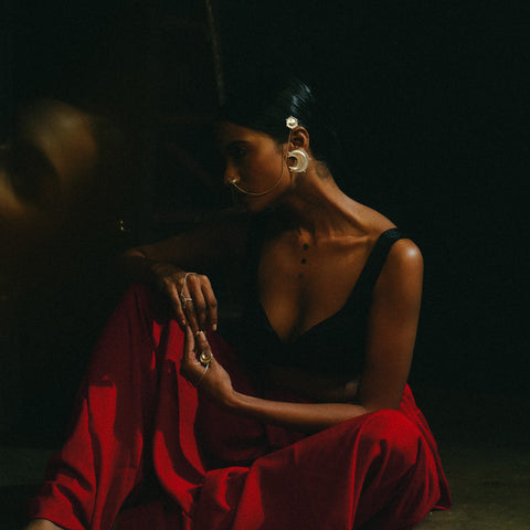 Surmeyi's Fall '24 Collection, Rasä, draws inspiration from dance to tell a story of four emotions that speak to our times: Belief, Wonder, Love, and Dichotomy. Each piece is a choreography involving a cast of the Sun, Moon, Surmeyi Fishes and Mogra Buds - capturing the essence of these emotions with perceived movement.